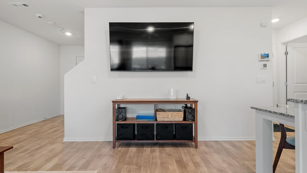 This brand new, 1,378 square foot, pet friendly, 3 bedroom, 2.5 bathroom smart home comes with a built in security system and smart doorbell. It has a private backyard with a grill and a full size kitchen inside. Kitchen includes an oven/range, dishwasher, air fryer, and full sized refrigerator. Enjoy a 65 inch smart tv on the large comfortable couch. Upstairs, find your own laundry room with full size washer and dryer. Here you will also find your bedrooms and two full bathrooms. The third bedroom is set up as a private office space for remote workers with an extra monitor and adjustable desk that can be used at sitting and standing heights. It also has a full size murphy bed so it can easily be used as an extra bedroom when needed. There is also a 2 car garage and private driveway for parking. Inside the garage is a Level 2 EV charger for those with electric vehicles.